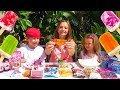 Я с Максом и Катей захотели провести МОроЖеное челлендж. По очереди достаем листик с нужным ингредиентом и добавляем его в мороженое. У кого будет вкуснее ?